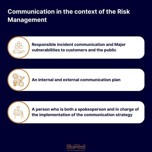 In a rather short and imprecise article, the regulation refers to communication in the context of the risk management framework. It provides for responsible communication of incidents and vulnerabilities, both to customers and to the general public.