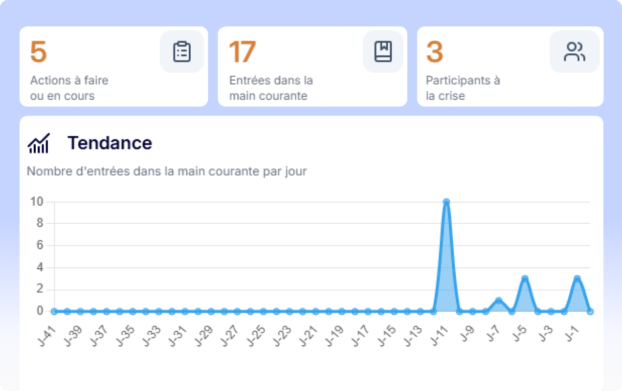 Crisis Cockpit is designed to provide a clear and operational vision from the first minutes of the crisis. It centralises information, structures action and facilitates decision-making in critical situations.