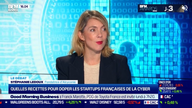 On December 2nd, Stéphanie Ledoux, founder of Alcyconie, was the guest of the Tech&Co Business program on BFM Business, alongside Aurélie Clerc (director of Cyber Booster) and Georges-Étienne Faure (director of the digital sovereignty division at the General Secretariat for Investment).